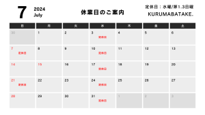 7月の休業日のお知らせです。
