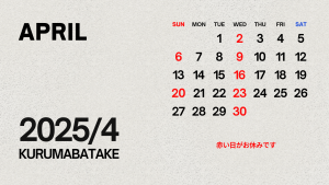 4月の営業/休業日のお知らせです。