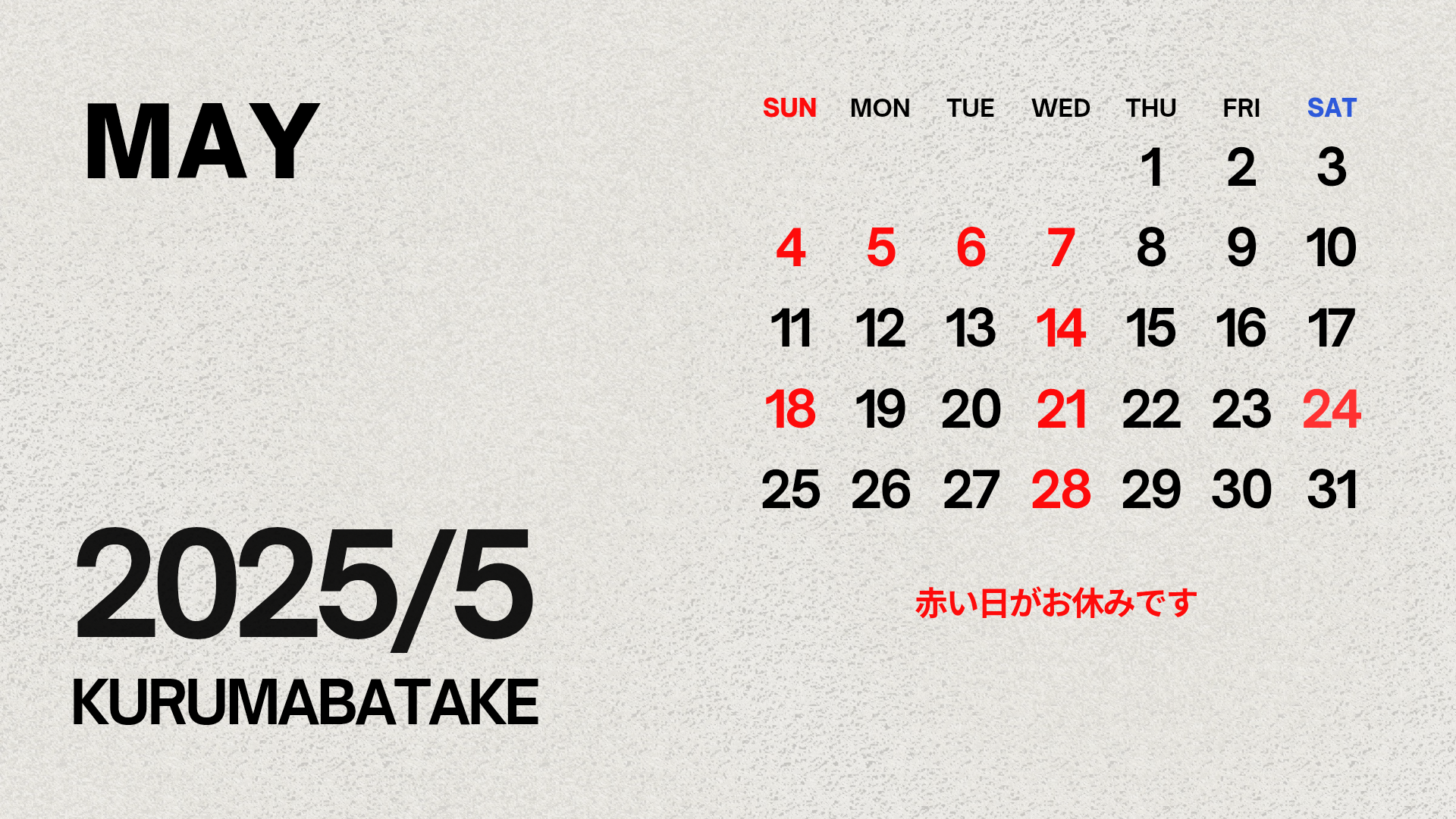 5 月の営業/休業日のお知らせです。