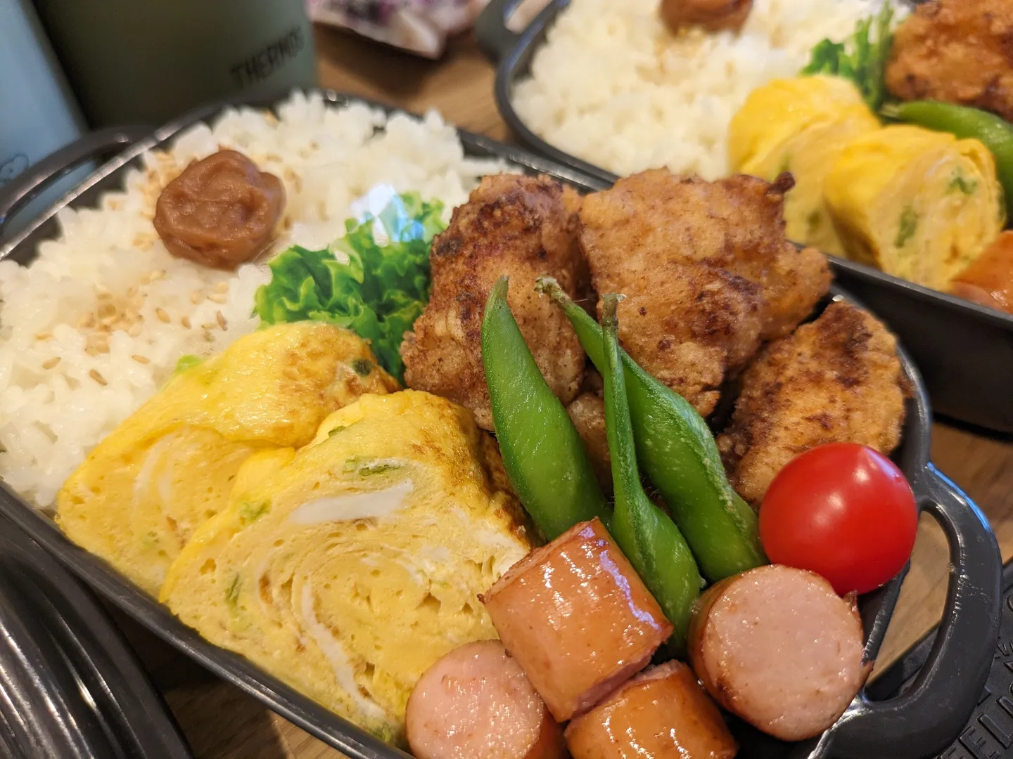 味付けして冷凍ストックしていた唐揚げ用お肉を揚げて、今日のムスメ弁当は唐揚げ弁当です。