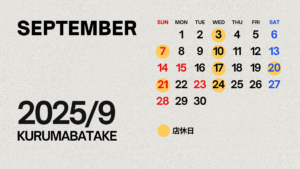 9月の営業/休業日のお知らせです。