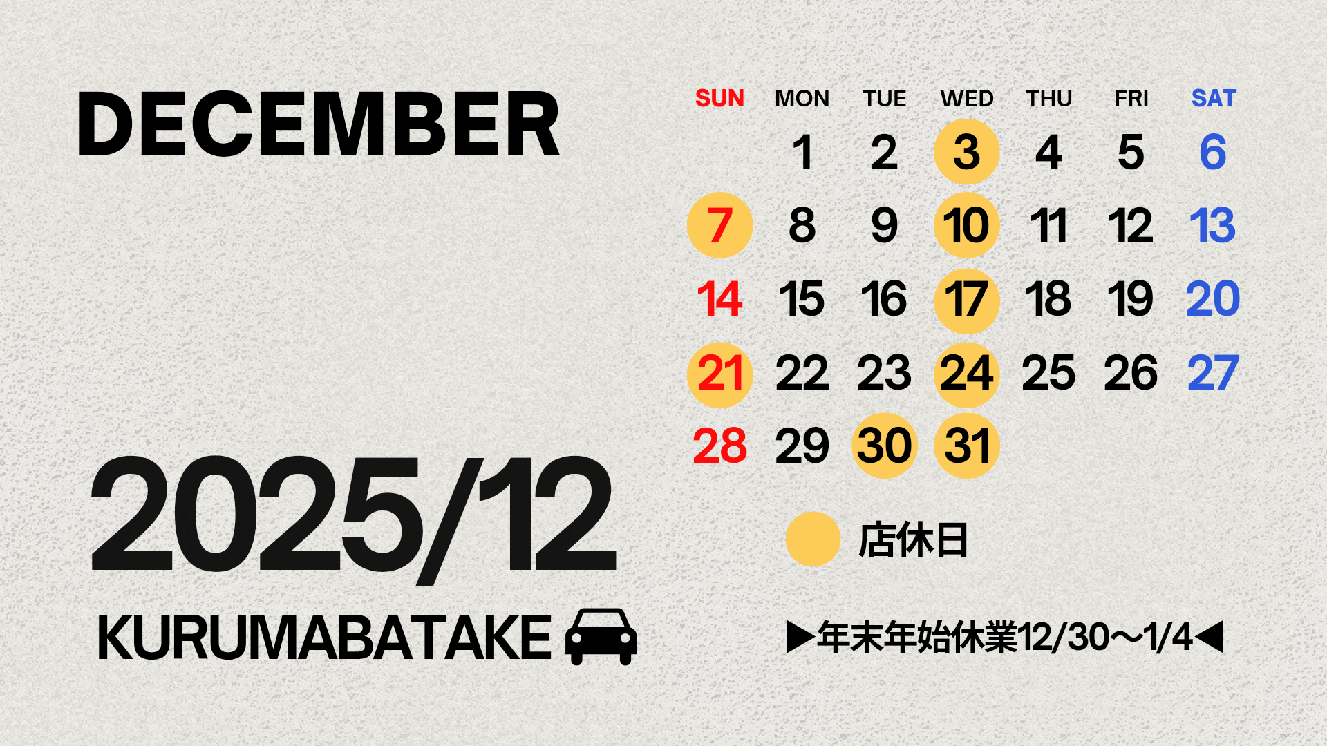 #お知らせ#営業日#休業日#年末年始休暇#車#くるま#車探し#グーネット#カーセンサー#エムジェーネット注文販売#新車販売#中古車販売#買取#車検#修理#板金塗装#自動車保険#保険代理店#愛媛県#愛媛#えひめ#砥部町#砥部#とべ#くるま畑#ご希望の車お探しします#最適な買い方ご提案