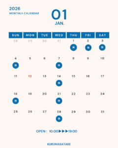 1月の営業/休業日のお知らせです。